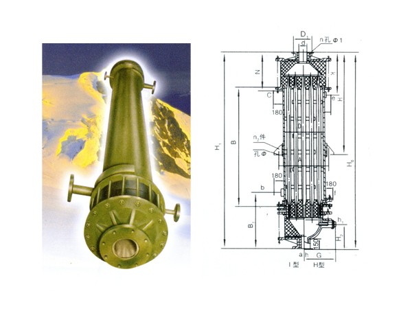 GX型系列列管式石墨降膜吸收器之吸收換熱元件為不透性石墨管,成膜條件極佳,故吸收效率高(與尾氣搭配合吸收率可達(dá)99%)生產(chǎn)強(qiáng)度大 CQ22/932X3000單管日產(chǎn)量可達(dá)0.8-1.2t33%鹽酸/天),且調(diào)節(jié)范圍大,產(chǎn)品不受污染,純度好,主要用于吸收Hcl氣制鹽酸。也可處理含Hcl、S02、NH2, HF、P2O5,H2S等氣體之尾氣,既回收某些成分 ,制取副產(chǎn)品減少或消除環(huán)境污染。本設(shè) 備之氣