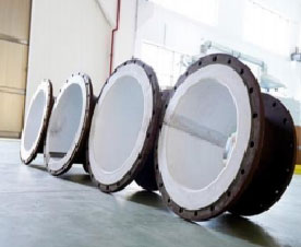 YKA型圓塊式石墨熱交換器以圓柱 體型單元積木式疊裝而成,結(jié)構(gòu)強(qiáng)度高,石墨件間墊以四氟質(zhì)或特種橡膠質(zhì)等質(zhì) 地密封件.密封可靠,設(shè)備導(dǎo)熱效率高,耐溫、抗沖擊、耐壓等性能優(yōu)越。本型設(shè)備分成I型與II型,I型載熱體切向進(jìn)入換熱塊,相鄰兩塊方向錯(cuò)開(kāi),縱向物料經(jīng)短 通逐塊再分配而紊流效應(yīng)顯著,下封頭附 加氣液分離的則成冷凝器,若上封頭改成 蒸發(fā)室則形成蒸發(fā)器。YKA-II型載熱體徑 向進(jìn)入換熱塊,殼體按外折